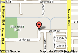 605 Freeway to Carson exit east to Pioneer, go right on Pioneer to 221st St. on 221st St. make a left school will be in the corner of 221st St. and Elaine Ave.
